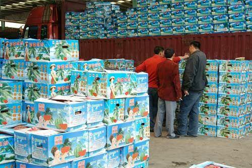 一位山東客商高興地說:今天到貨的三萬公斤伊麗莎白甜瓜已經(jīng)銷售二萬公斤,收益著實(shí)不錯。