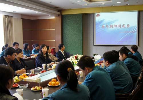 朝陽集團常務(wù)副總經(jīng)理張君君主持座談會。她向與會的中青年骨干們介紹了朝陽集團風雨滄桑的歷史變遷,以及朝陽集團不斷發(fā)展壯大的輝煌歷程。與會代表們無不為之動容,為之歡欣鼓舞。圍繞企業(yè)的發(fā)展,個人的成長,以及對未來的展望,代表們?nèi)呵榧ぐ海瑫乘浴>实难葜v,誠摯的感言,那是代表們發(fā)自肺腑的心聲,更是對朝陽事業(yè)的滿腔熱愛。整個座談會在輕松、和諧的氛圍中展開。朝陽集團黨委書記錢韌、總經(jīng)理楊興德也專程到會,聆聽了代表們的發(fā)言。錢書記還發(fā)表了熱情洋溢的講話,對青年人寄予了厚望。