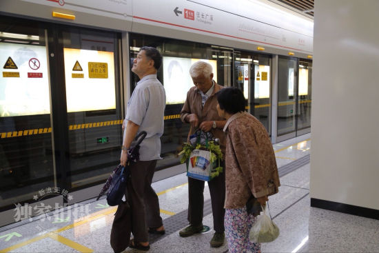 1號線一開通,不少市民就趕緊來體驗地鐵。在南禪寺站,不少阿公阿婆就提著菜籃子走了上來。一位阿婆告訴小編,自己家住在市民中心附近,今天早上坐著公交去朝陽廣場買菜,現在就坐著地鐵回家了,“去朝陽廣場買菜坐地鐵更方便,以后我會經常坐的。”