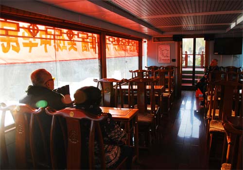 上午8:30,停靠在無錫朝陽文化工藝品市場(chǎng)河邊的水上巴士一聲低吟,輕快地離開碼頭。