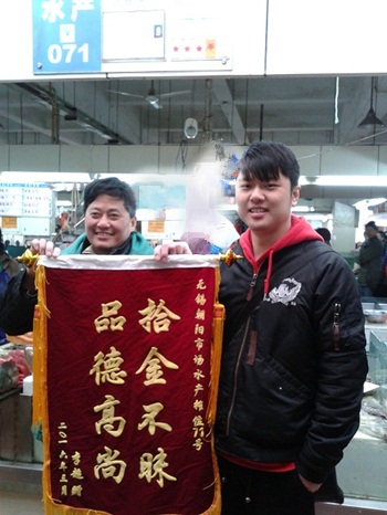 在今年的4月1日上午,顧客馬先生和往常一樣來到朝陽農貿市場買菜。當他在蔬菜攤位122號駐足時突然發現腳下有一個黑色的錢包,錢包里有1500元現金、一張身份證、數張銀行卡。馬先生當即將錢包交給服務臺。隨即市場管理員立刻用廣播尋找失主,最終根據身份證上的信息還給失主。