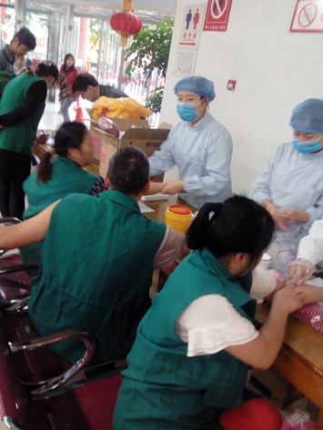 今天上午,在朝陽農貿市場,應無錫市衛計委要求,梁溪區疾控中心對朝陽農貿市場相關職業暴露人群流感病毒感染狀況進行監測。  據疾控中心醫生說,進行流感監測主要從易感人群入手,包括經常接觸雞、鴨、鵝等活禽和豬、牛、羊、豆制品等商品的攤主,目的是早發現、早治療,降低死亡率,保護人民生命健康和財產安全。該抽血檢測已持續三年,由200多名經營戶參與。