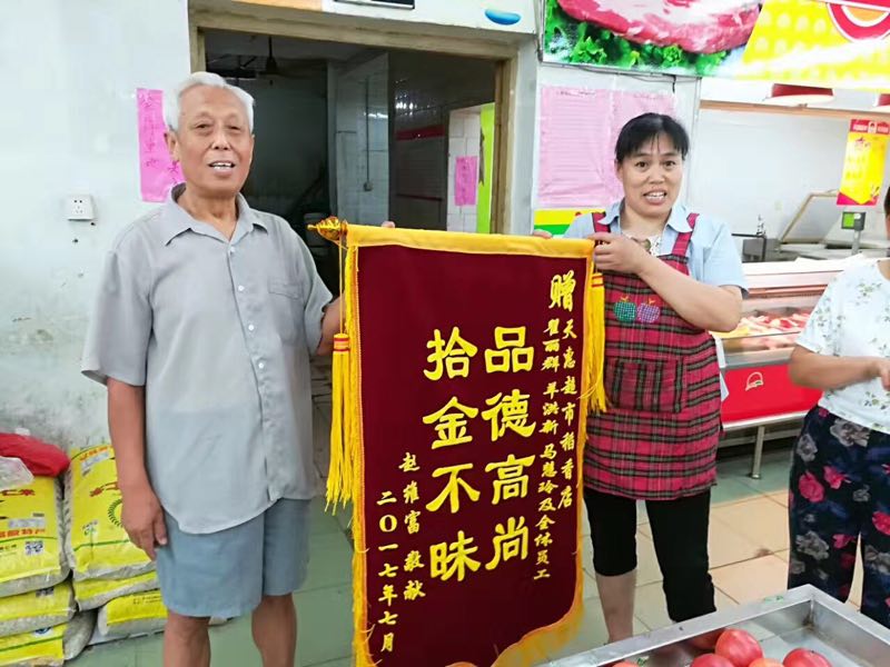 拾金不昧是中華民族的傳統(tǒng)美德。本月,天惠超市稻香店瞿麗群、羊洪新、馬慧玲等同志就用實際行動弘揚了拾金不昧、為顧客著想的高尚品德和企業(yè)正能量。 事情的經(jīng)過是這樣的:7月8日星期六早上,顧客趙先生在天惠稻香超市購物時不慎遺失錢包,被收銀員瞿麗群在打掃衛(wèi)生時撿到,她當(dāng)時沒有任何猶豫,就立即交給了門店經(jīng)理羊洪新。錢包中不止有身份證,還有現(xiàn)金、銀行卡、市民卡等物品,價值過萬元。她們以為失主肯定會前來尋找,就一直在店里等人認領(lǐng),但等了兩天失主還是沒來。本著為顧客著想的心情,7月10日,經(jīng)理羊洪新和員工馬慧玲不顧外邊下著大雨,憑著錢包里的身份證找到了失主家。當(dāng)時,又恰逢失主不在家,她們又托人帶信請失主到超市認領(lǐng)。當(dāng)日下午,失主趙先生便到超市認領(lǐng)了錢包,為表感激,當(dāng)時他主動提出現(xiàn)金酬謝,被羊洪新和員工們當(dāng)面拒絕。7月11日早上,失主趙先生特地送給稻香店一面錦旗,表示感謝。 拾金不昧不僅反映了個人的高尚品德,同時也體現(xiàn)了一個團隊或企業(yè)職工的素養(yǎng)和正氣。勿以善小而不為,天惠稻香店員工拾金不昧、積極尋找失主的行為,在其他天惠門店也經(jīng)常發(fā)生。他們用一點一滴的實際行動,展示了天惠職工的高尚品質(zhì),體現(xiàn)了企業(yè)為民、便民、利民的宗旨,弘揚了正能量。