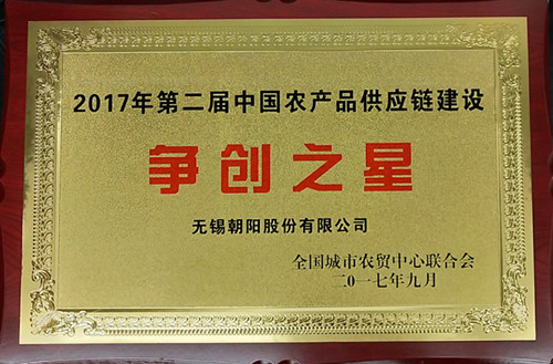 無錫朝陽股份有限公司被授予“2017年第二屆中國農產品供應鏈建設爭創之星”榮譽稱號