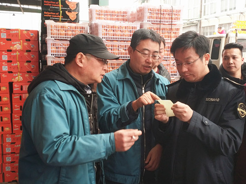 胡局一行先后來到監控中心、蔬菜備案中心、檢測中心、結算中心,聽取了朱總就大市場在溯源體系建設、蔬菜準入、農產品檢測、食品安全維護等工作的匯報。隨后他們又來到蔬菜、水果、家禽市場,現場檢查了農產品在市場流通的各個環節,了解了索證索票、消毒消殺等工作的執行落實情況,對市場在食品安全方面所做的工作表示認可,并希望市場在春節期間進一步加強食品安全工作,確保消費者買得放心、吃得放心。