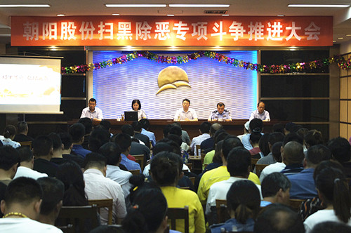今年是開展掃黑除惡專項斗爭的攻堅之年,也是關(guān)鍵之年。為進(jìn)一步掃除黑惡犯罪,弘揚(yáng)社會正氣,5月29日下午,無錫朝陽股份有限公司聯(lián)合劉潭派出所在二樓會議室召開掃黑除惡專項斗爭推進(jìn)大會。來自各市場、部門的客商、商戶、租賃戶等230余人參加了此次大會。