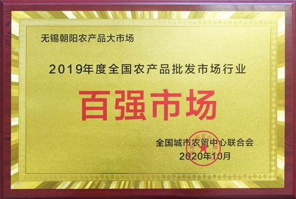 近日,無錫朝陽農產品大市場被全國城市農貿中心聯合會評為“2019年度全國農產品批發市場行業百強市場”。