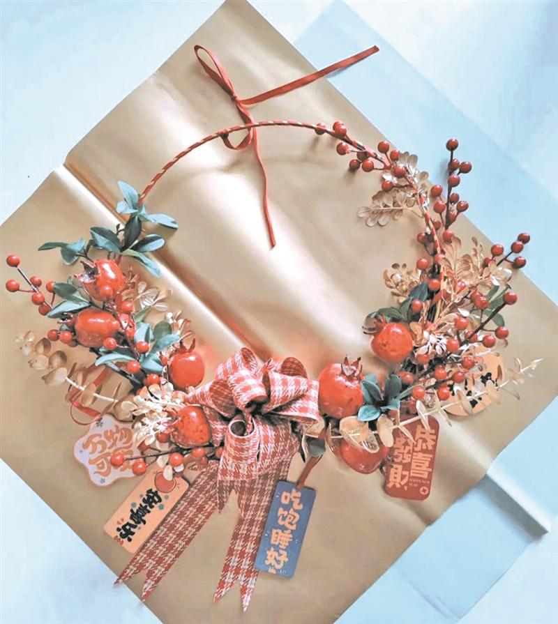 還有“進(jìn)階版”詳細(xì)教程:加入五代同堂果、石榴果、仿真柿子、桔梗制作的小掃把;用流蘇穗穗、玩偶掛件、卡片等做成一個精致的門掛,寓意著新的一年平安好運;將冬青和尤加利葉做成一個小巧的收納盒,里面放置香橙片,寓意著心想事成;收納盒做大一點,還可以放紙巾、遙控器、鑰匙等物品……自己動手,根據(jù)個人喜好增減裝飾物,看膩了的年宵花“變廢為寶”,也是一大樂趣呢。 (晚報記者 吳雨琪/文、攝) |
