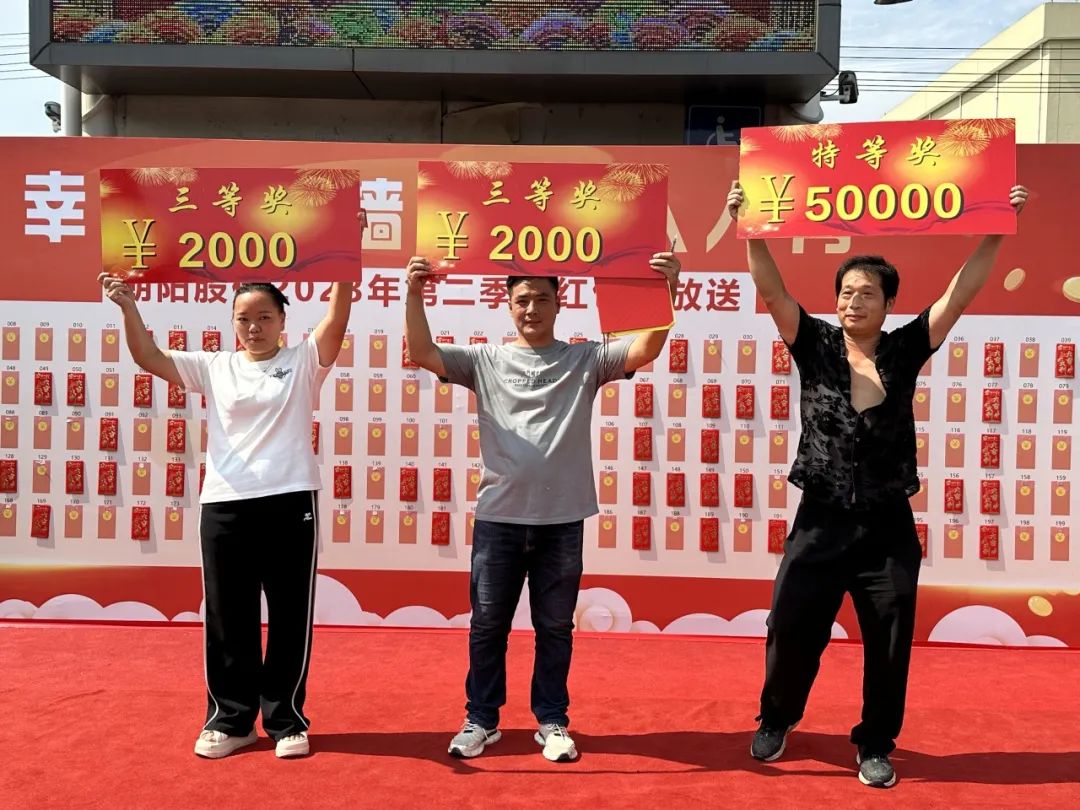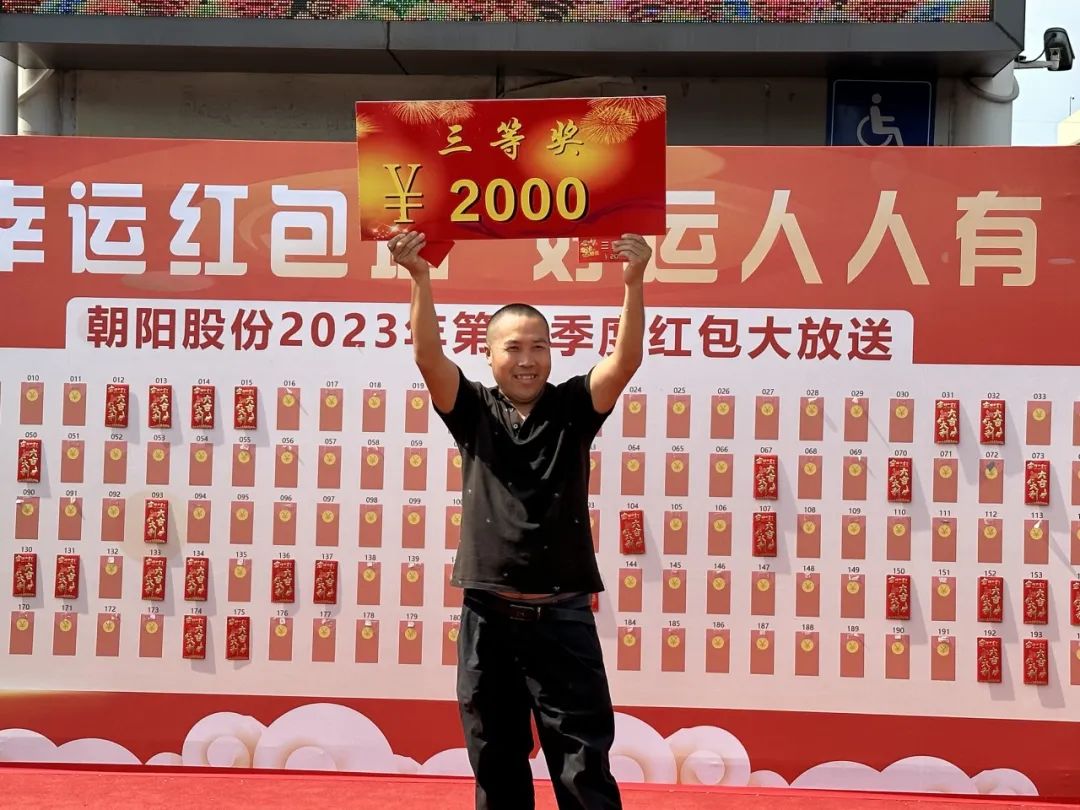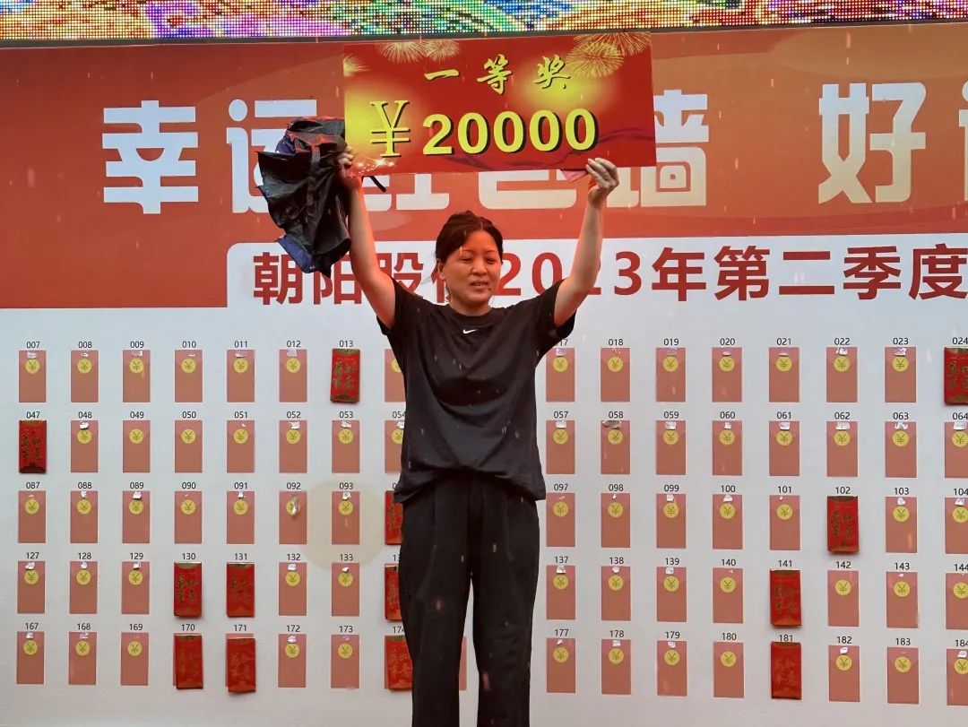 現場的歡呼聲、尖叫聲、祝福聲此起彼伏,大家的心情也愈加緊張和興奮,隨著一個個大獎被幸運會員收入囊中,抽獎活動在雷鳴般的掌聲和歡笑聲中圓滿落下帷幕。為繼續回饋廣大會員,三季度朝陽股份還將繼續舉辦會員進貨滿額摸獎活動,給廣大會員帶來更多的驚喜。讓我們攜起手來,凝心聚力,共創朝陽新的輝煌! (供稿:張柯宇) |