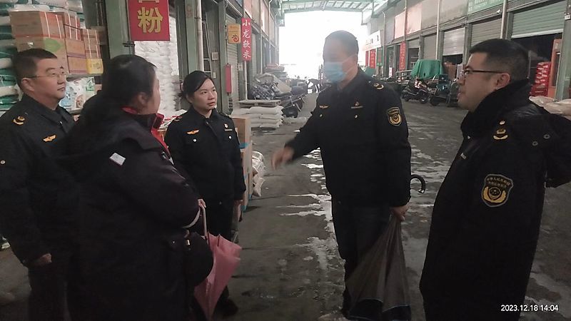 2023年12月18日,梁溪區市場監督管理局分局長蔡曉玲帶隊協同瞻江市場監督管理局王林峰局長一行6人來朝陽糧油市場就今日無錫風雪天氣對朝陽糧油市場保供穩價及安全經營、特種設備等方面進行了實地查看。朝陽北區經理楊敏全程陪同,針對市場對安全方面的檢查及措施、保供穩價方面的措施及做法,詳細介紹解說給檢查人員。檢查人員對市場做的一系列工作表示認可。