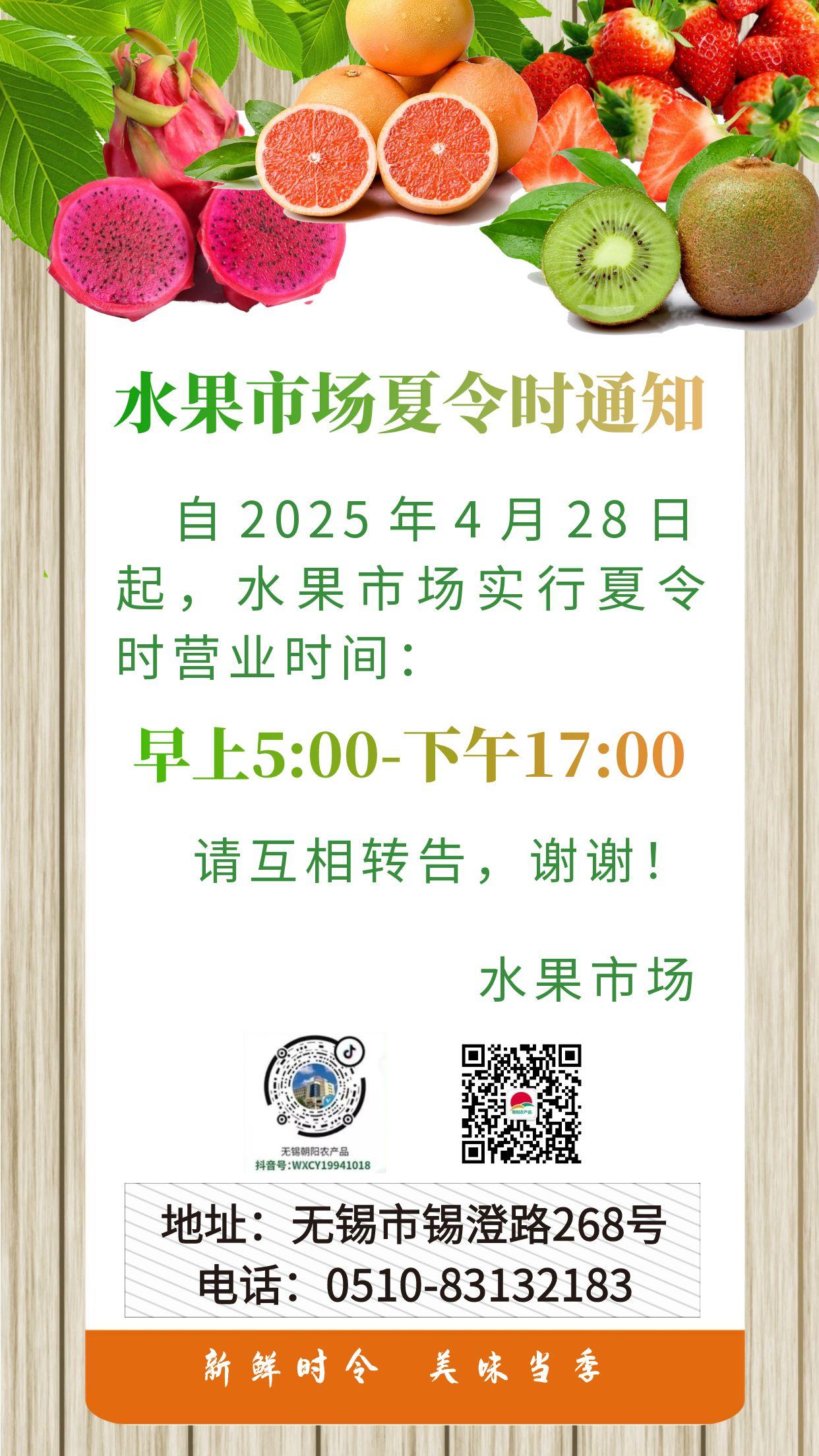 朝陽股份水果市場夏令時營業(yè)時間通知