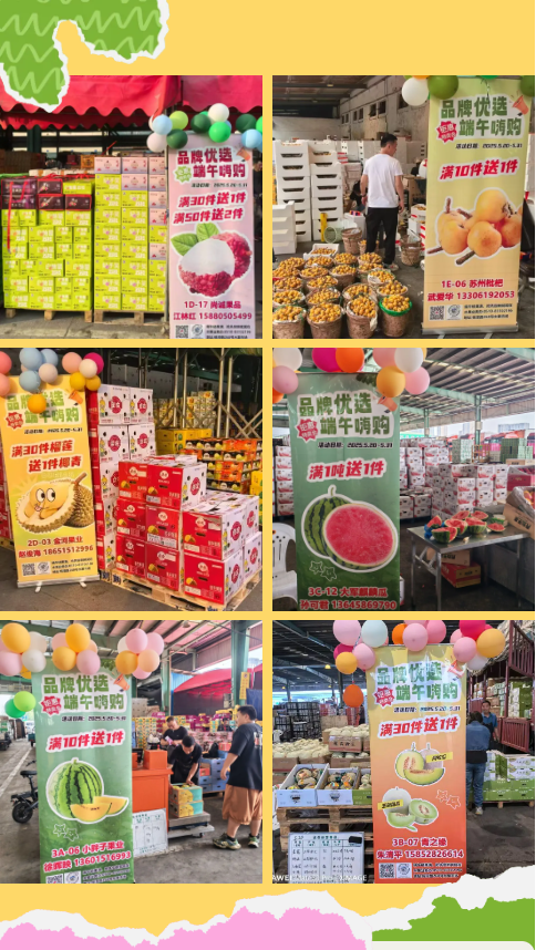 水果市場共26位品牌商積極參與本次活動,大家提前聯系產地進行備貨,推出端午適銷的枇杷、荔枝等精品禮盒。市場開市后,會員們熱情采購,享受活動價,增加拿貨量,榴蓮迅速售出半車。為保障廣大會員能夠采到高品質好貨,供應商排好發貨計劃,每天新鮮到貨,預計榴蓮柜車每天到貨30余柜,荔枝全程冷鏈運輸。在這浪漫的日子里,快來感受枝頭直達心頭的甜蜜吧。