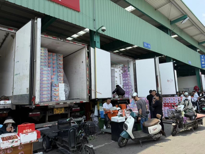 近日,朝陽水果市場端午促銷活動進行地如火如荼,水果市場中央大道兩側荔枝區也相當“鬧猛”,隨著廣東、海南等主產區荔枝大量上市,整車整柜的荔枝持續到貨,車載銷售的荔枝并車齊驅,車擠車,人擠人,爭相競品這一口初夏甜蜜。