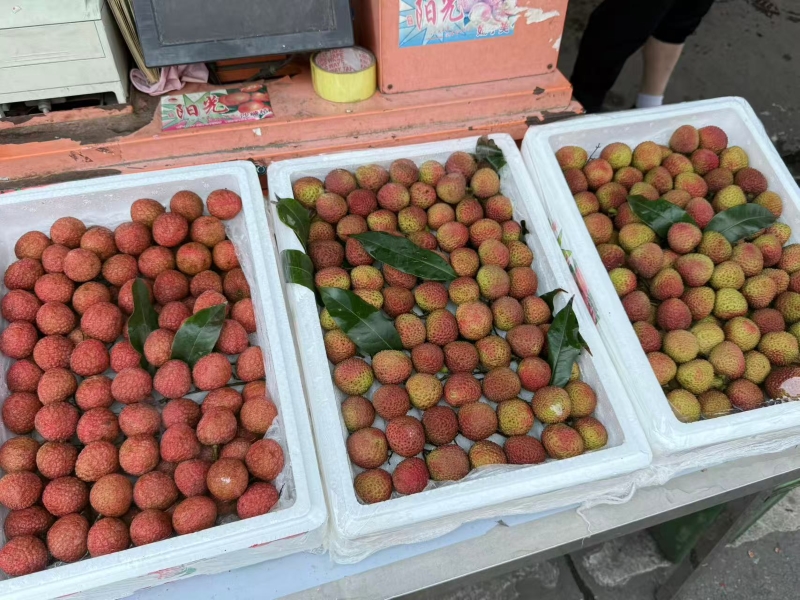 近三日,在場整車荔枝巔峰時期同時到貨38車,個別客商當日到貨5車、在途2車,荔枝整體交易量環比上周上升一成多,價格持續“跳水”,目前妃子笑荔枝單價9.8元/斤,環比上周下降23.4%;白糖罌荔枝單價11.4元/斤,環比上周下降31.4%,市民翹首以盼的“荔枝自由”觸手可及。