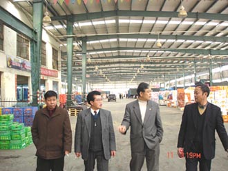 3月11日,中國果品流通協(xié)會(huì)常務(wù)副會(huì)長(zhǎng)傅秀泉、副會(huì)長(zhǎng)陳光輝、信息部助理孟偉來錫澄果菜副食品交易市場(chǎng)視察工作。朝陽集團(tuán)公司總經(jīng)理?xiàng)钆d德先生陪同。