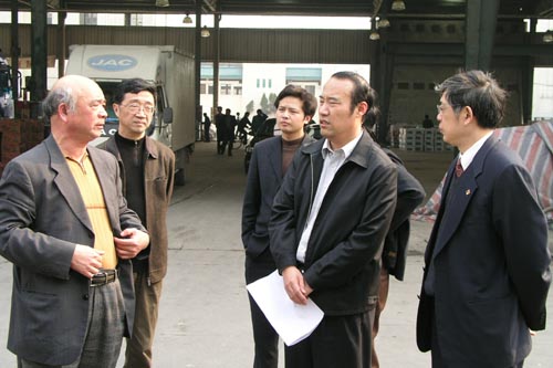 隨后,吳副市長一行在張海良董事長、楊興德總經理的陪同下,實地察看了朝陽農貿市場、朝陽蔬菜交易市場。在錫澄果品市場,市領導針對正在規劃中的“朝陽農產品大市場”進行了認真的研討,并表示將盡快把這一規劃付之實施。