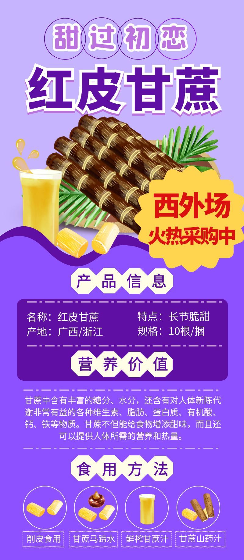 金秋限定!整根甘蔗甜滿生活 甘蔗甜蜜上市,在水果市場,我們的甘蔗有著與其他批發市場截然不同的獨特銷售方式——整根銷售,不去頭不去根。看似簡單的銷售方式,卻蘊含著滿滿的美好寓意。整根甘蔗,象征著 “甜蜜美滿”,每一口清甜,都能讓你感受到生活的幸福滋味;同時,它還寓意著 “節節高升”,就像甘蔗一節比一節高的形態,愿您在生活和工作中,都能步步高升,收獲滿滿。 我們精選的甘蔗,來自廣西、浙江等國內知名甘蔗種植產區,每一根都粗壯飽滿、汁水充足、含糖量高。無論是自己在家榨汁解饞,還是作為禮物送給親朋好友,都是金秋時節的絕佳選擇。歡迎到西外場交易區選購,讓這份甜蜜與美好,伴隨您度過整個金秋。