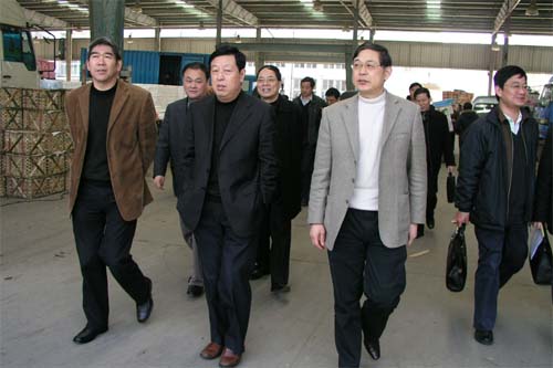 3月14日,無錫市經貿委主任闕信方帶領市經貿委各部門領導,專程前往朝陽農產品大市場調研。朝陽集團總經理楊興德、黨委書記華泉榮、朝陽股份公司總經理錢韌陪同市領導在現場察看。